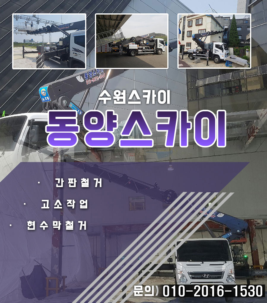 동양스카이는 간판철거/고소작업/현수막철거등의 업무를 분담하는 수원스카이 전문업체 입니다.